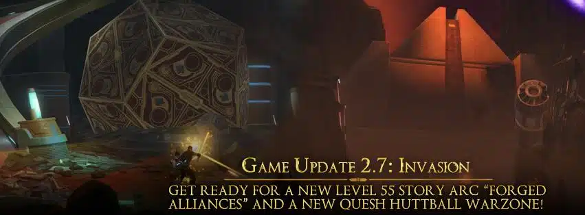 Patch notes are up for gameupdate 2.7. The net update opens tomorrow with a new storyline, Quesh Huttball Warzone, Starfighter Battle Zone and more. What are YOU most excited about?.