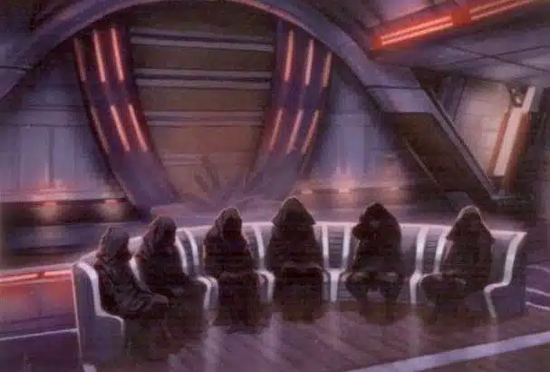 When Nomi Sunrider asked of her master if those who use the dark side can command Battle meditation, Odan-Urr replied that indeed they could, but it was very rare. Emperor Palpatine and Grand Admiral Nial Declann had also mastered this technique, and used it to great effect in the Battle of Endor. Following Palpatine’s death, the shock of the sudden removal of this influence threw the Imperial Navy into chaos and allowed the Rebel fleet to defeat them. One thousand years earlier, Lord Kaan also used battle meditation during the New Sith Wars. Joruus C’baoth, the clone guardian of Mount Tantiss on Wayland, increased the victory percentage of Grand Admiral Thrawn’s armies by forty percent via dark Battle meditation.