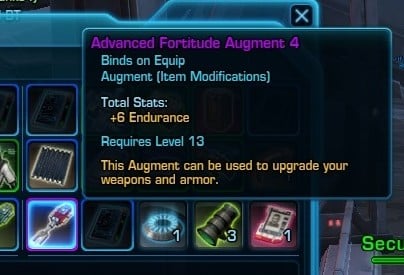 Other Augments are available, some of which can even increase more than one stat. When SWTOR was first released, some items automatically come with Augment Slots for increasing your stats. However, crafting was the main way to acquire the slots but when crafting the item you had to hit a critical. In other words, they weren’t that easy to come by and you couldn’t get them on some weapons and armor. Then, things changed with the release of Patch 1.3.