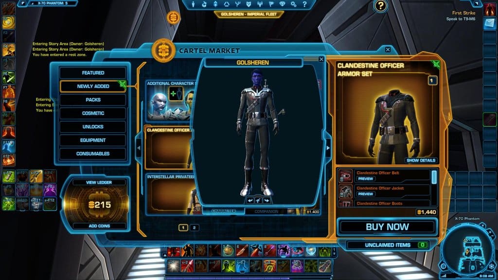 - Two new armor sets, the Interstellar Privateer Armor Set and Clandestine Officer Armor Set, can now be purchased. Each armor set costs 1,440 Cartel Coins.