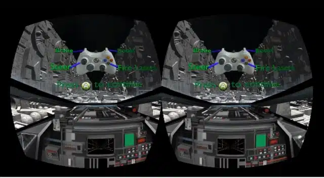 As you can see from the video below, users can look around the cockpit of the X-Wing–complete with R2-D2 in the back. The demo uses an Xbox 360 controller for input.