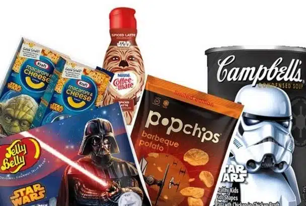 Unless you’ve been living under a rock, you know that Star Wars is hot right now. The new films have created a surge in the franchise’s popularity and we’re seeing Star Wars everywhere. This can be a good thing for the Star Wars fan but can it go too far? While buying groceries this past week, I noticed all the Star Wars branded foods. This is typical of cereals and snack foods, more than anything else, at least here in the US. I saw Star Wars cereals, yogurt, Cambell’s soup cans, and even Cheez-Its with Yoda on the front. They’re on Pringles cans and ice cream, and even coffee creamers.