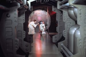 Or, how the red lightning in the scene where Princess Leia records the message via R2-D2 gives the scene a sense of urgency. You can also argue how her white dress against the dark corridors represents the “New Hope”. And there’s a separate work that you can write on how John Williams’ score compliments the movie.