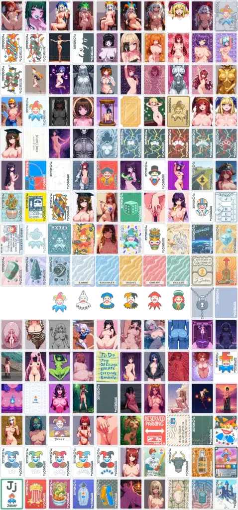 - Standard card faces (numbers, suits, jokers) replaced with NSFW pixel art