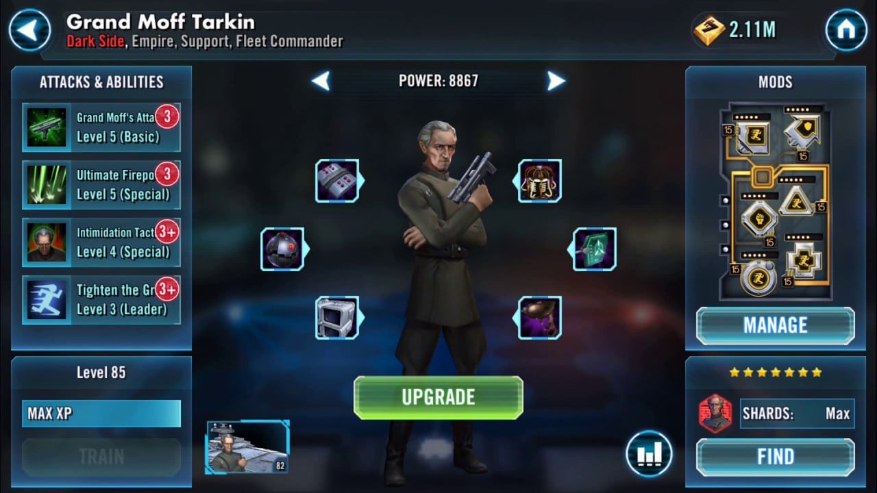 To get the best out of Scorch, you want to pair him with a well-structured Dark Side Clone Trooper team. For 5v5 battles, pairing him with Lord Vader unleashes his full potential, stacking Bulwark and allowing Entrenched to deliver maximum sustainability. For 3v3 GAC, Grand Moff Tarkin is the ideal leader, triggering extra attacks and making Scorch a near-immovable object on the field.