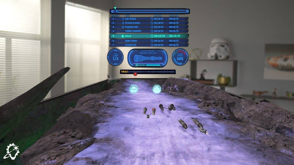 - Third-person top-down podracing: Rather than forcing a first-person racer in MR (which can be disorienting), they opted for a 3D diorama/holotable approach. It’s a balance between spectacle and readability in MR space.