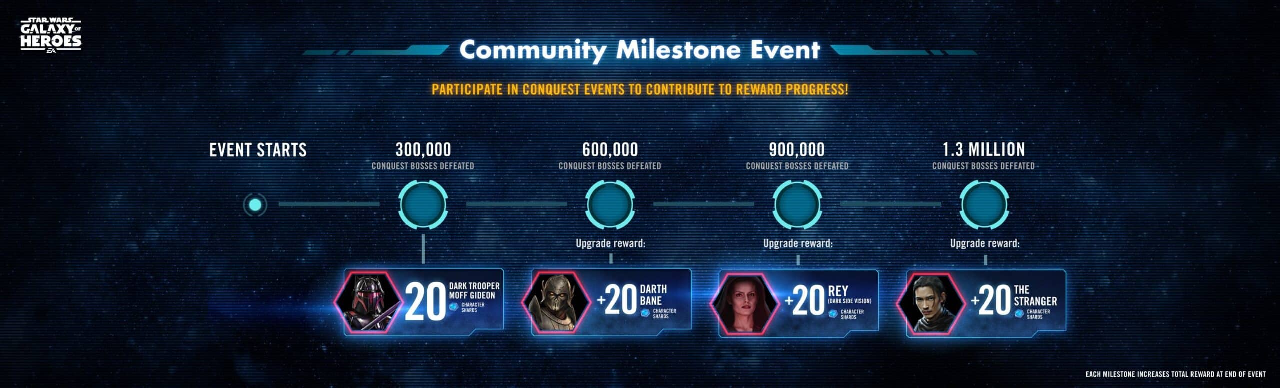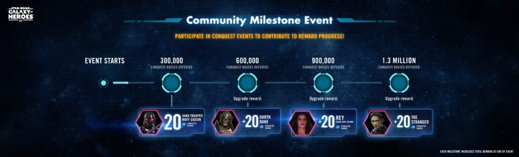 The Community Conquest Milestone Event is a perfect mix of humor, nostalgia, and teamwork — a warm-up lap before Galaxy of Heroes enters its monumental 10th year.