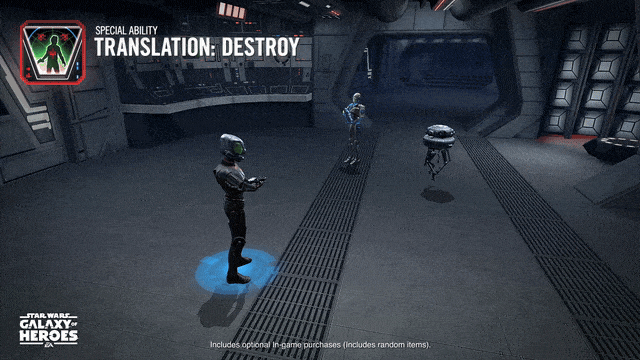 - Adds huge synergy with Zuckuss — extra Health, Protection, and bonus Turn Meter from Corrupted Translation triggers.