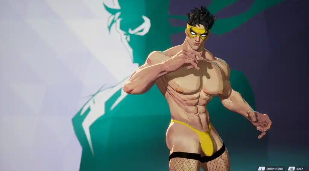 Iron Fist remains shirtless, shredded, and very much “battle ready,” but the stockings add a deliberately sexy twist. It’s suggestive without going fully into “Marvel Rivals nude mod” territory—though the mod does require assets from other nude-leaning character edits to function.