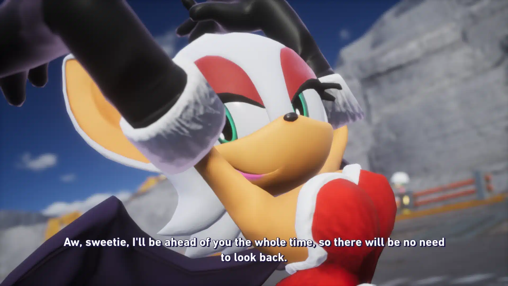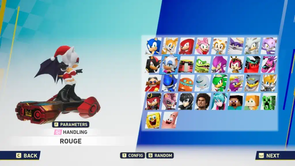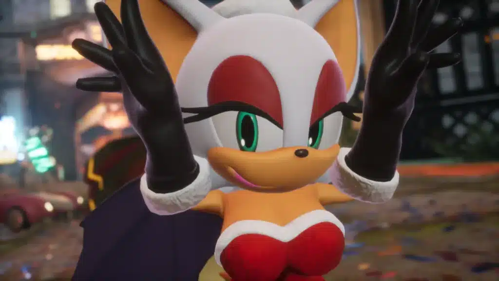And let’s be honest: seeing Rouge posing dramatically with a Santa-themed outfit in the middle of a drift boost is… something.