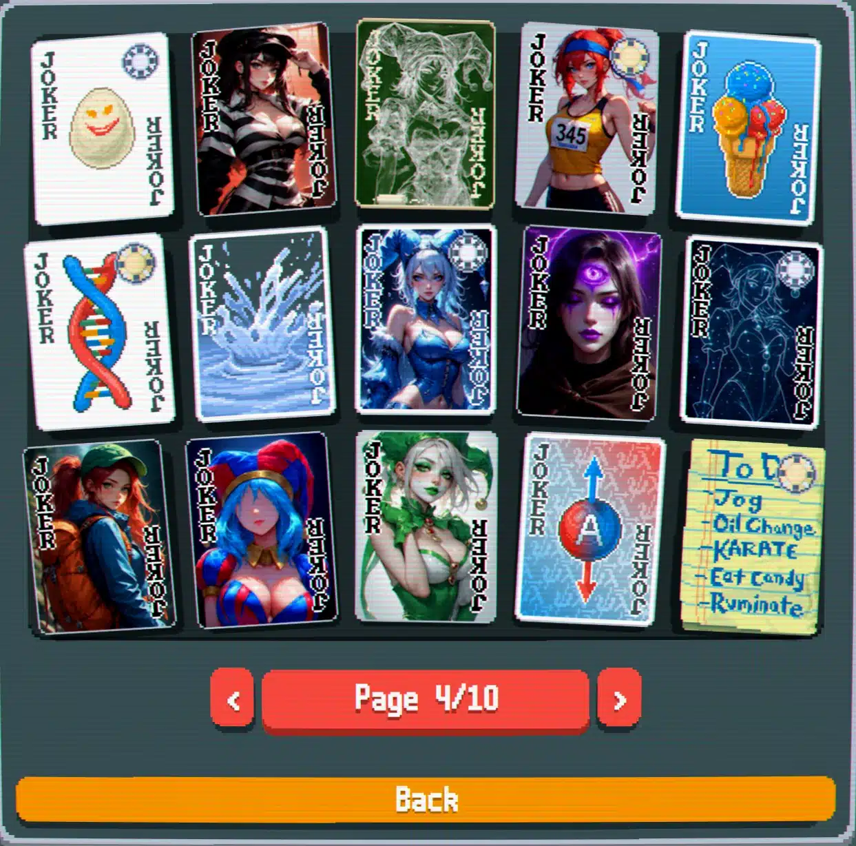 NSFW Waifu Jokers is a full Joker card texture replacement for Balatro. Every Joker card has been redesigned with a unique jester-girl illustration, creating a visual progression where: