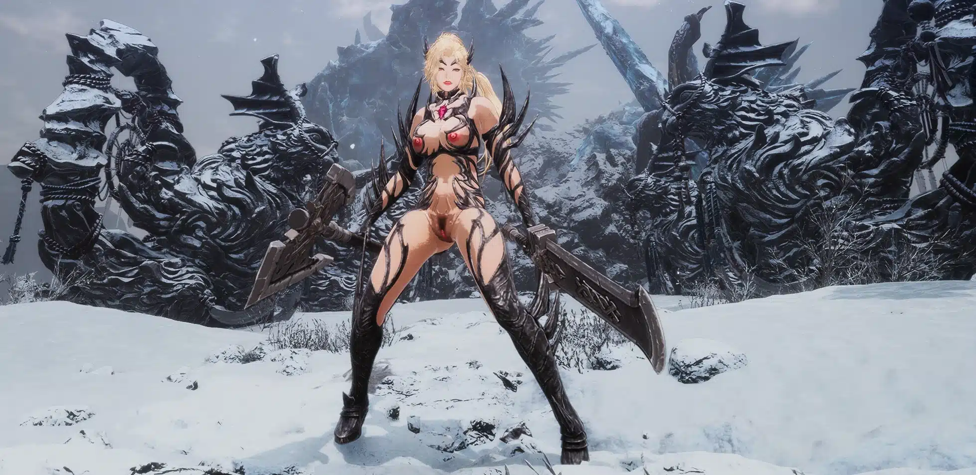 The good news? Once it’s installed properly, the end result is a stylish, edgy black armor set that looks like it walked out of a dark fantasy runway show (and then immediately caused a scandal).