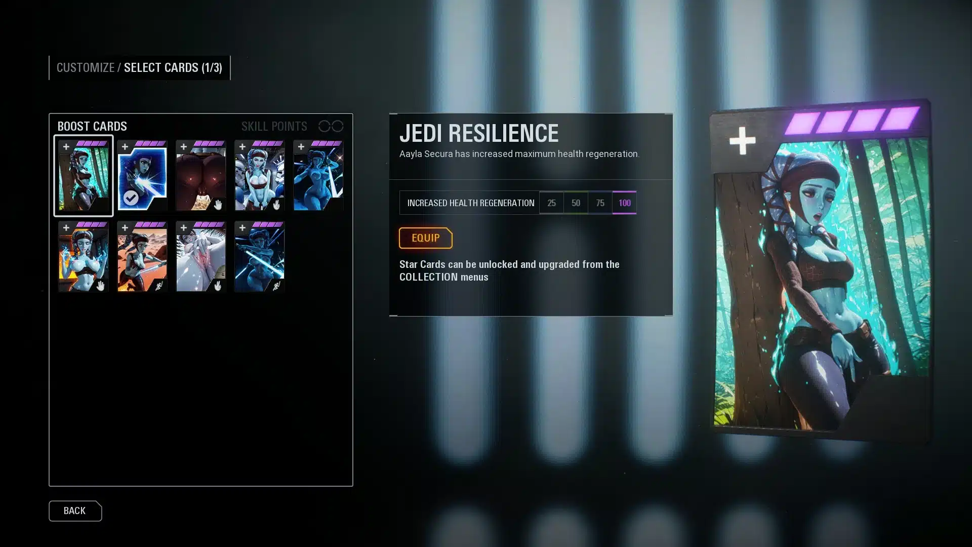 Once combined, you’ll have Aayla replacing Obi-Wan on the battlefield with matching contextual Star Cards in your loadout menu, making the whole experience feel far more cohesive.
