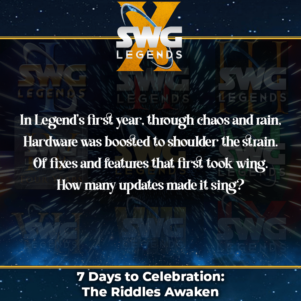 As part of the celebration, the team will release one new riddle each day for seven days, all inspired by the history, milestones, and community memories that shaped SWG: Legends over the past decade.