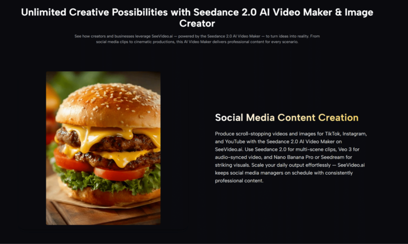 Inside the Seedance 2.0 AI Video, the main video engine is positioned as the default place to start. That choice makes sense. A small team usually needs one dependable first option before it needs specialized alternatives.