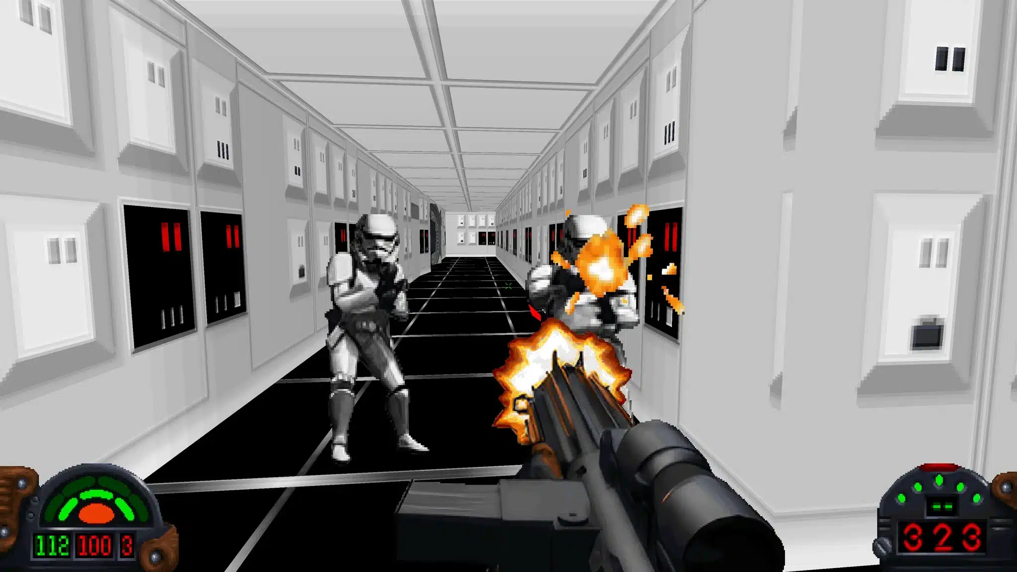 What really helped the game rise above the pack was movement and space. The original Dark Forces gave players the ability to look up and down, jump, crouch, move across catwalks, ride platforms, and navigate multi-layered environments in ways that were unusually advanced for the time. StarWars.com points out that the game had proper room-over-room environments and even occasional 3D models in special cases, while MobyGames notes the Jedi engine’s technical advantages over many comparable shooters. That may sound normal now, but in 1995 it helped make the game feel far more dynamic than a lot of its competition.
