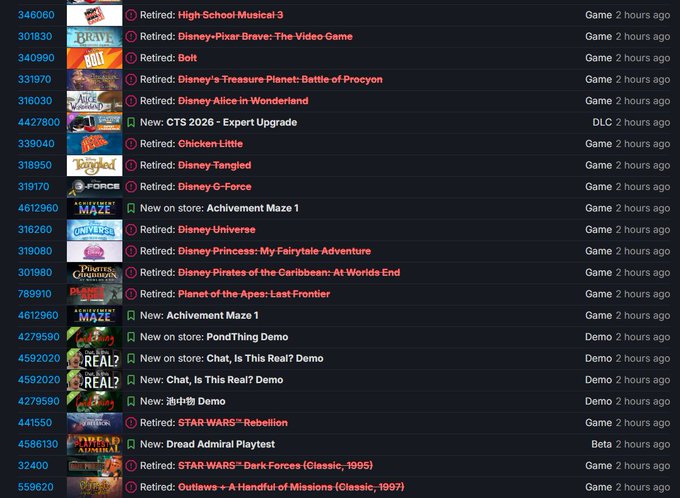 A fresh round of Disney-related delistings has hit Steam, and this time it includes the original STAR WARS™ Dark Forces (Classic, 1995). SteamDB shows the game as “Retired,” and PC Gamer reports that this latest wave also affects a wider batch of older Disney-published titles.