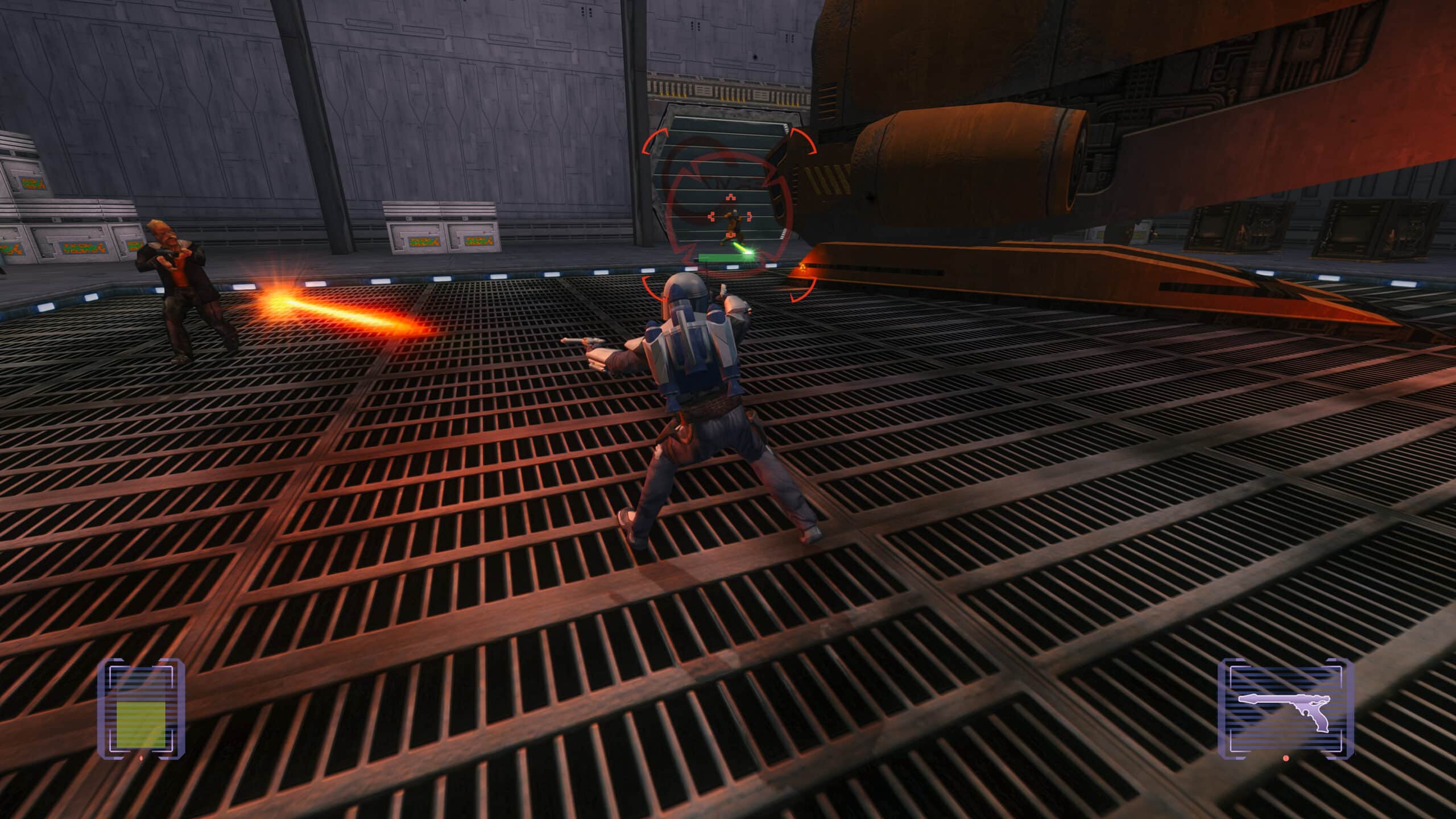 That was the right instinct. Because let’s be honest: nobody bought into a Jango Fett game hoping for a delicate meditation on restraint. Players wanted to fly around, chain attacks together, scan targets, and look like the most dangerous person in a room full of dangerous people. Bounty Hunter gets a surprising amount of mileage out of simply committing to that fantasy as hard as possible. You are not a reluctant hero here. You are a working professional in a very unhealthy line of work. That gives the whole game a different flavor from a lot of other Star Wars titles of the time.