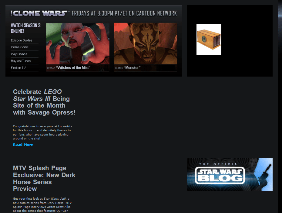 Once there wasn’t a giant movie release constantly feeding the machine, StarWars.com had to figure out what kind of site it wanted to be. That’s where things get a little messier, but also more revealing. The site experimented with blogs, forums, ongoing editorial content, and broader franchise coverage. In other words, it was trying to avoid becoming a ghost town between films.